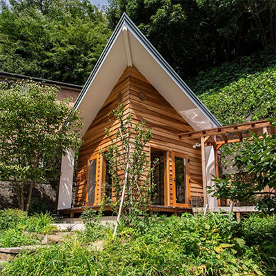 更地にしなかった結果、大きく育ったツバキや柿、柑橘が庭に彩を与えてくれています。その樹木を中心に、“小さな里山“のような庭が出来上がりました。里山の良さはたくさんあります。第一に除草が不要なこと。第二に植え替えが不要なこと。さらにアトピッコハウスの庭では、不要となった草木を敷地内で堆肥化する”バイオネスト“を設置することで、追肥する必要もまったくありません。剪定ゴミ処分費も、肥料代もかからないのです。