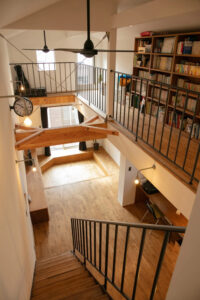 吹き抜けに面した壁一面の本棚も贅沢な空間の演出に一役買っています #パーフェクトウォール(100S)