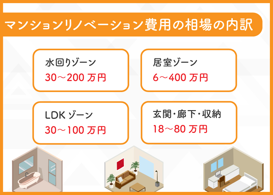 • マンションの部分リノベーションは各場所で200〜350万円が相場