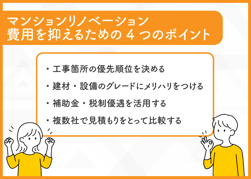 そこで本記事では、マンションリノベーションの相場や費用を抑えるためのポイントを詳しくご紹介していきます。