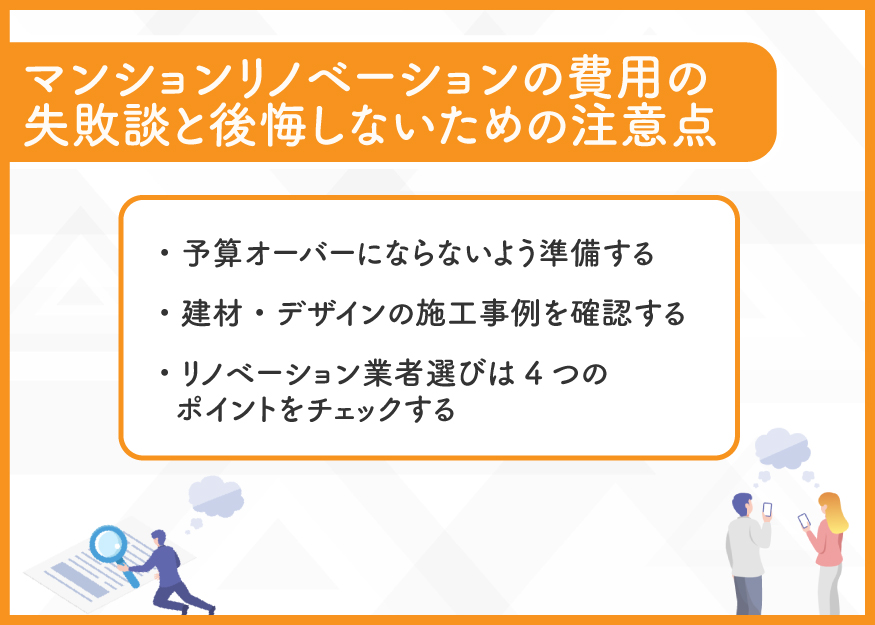 マンションリノベーションでは、費用面での失敗や後悔も少なくありません。