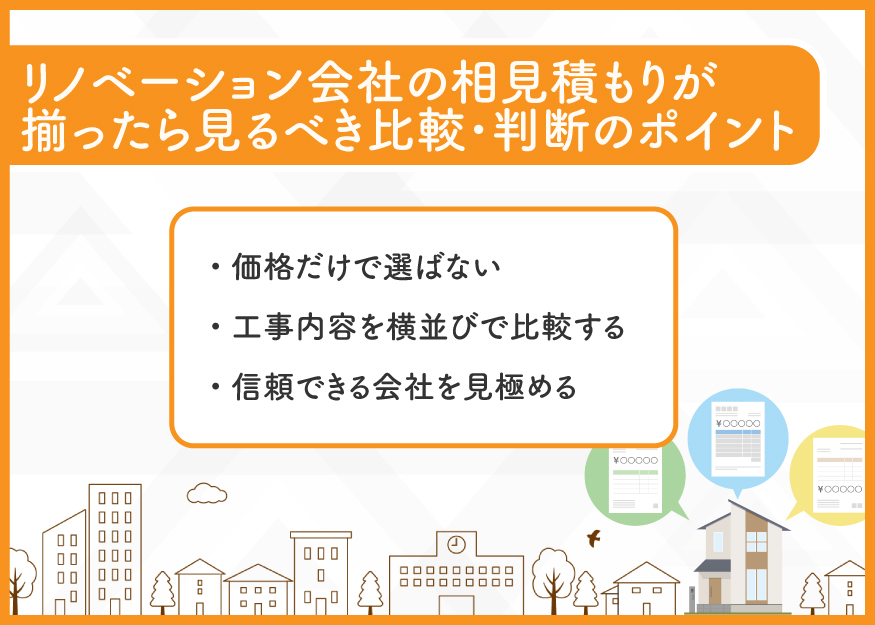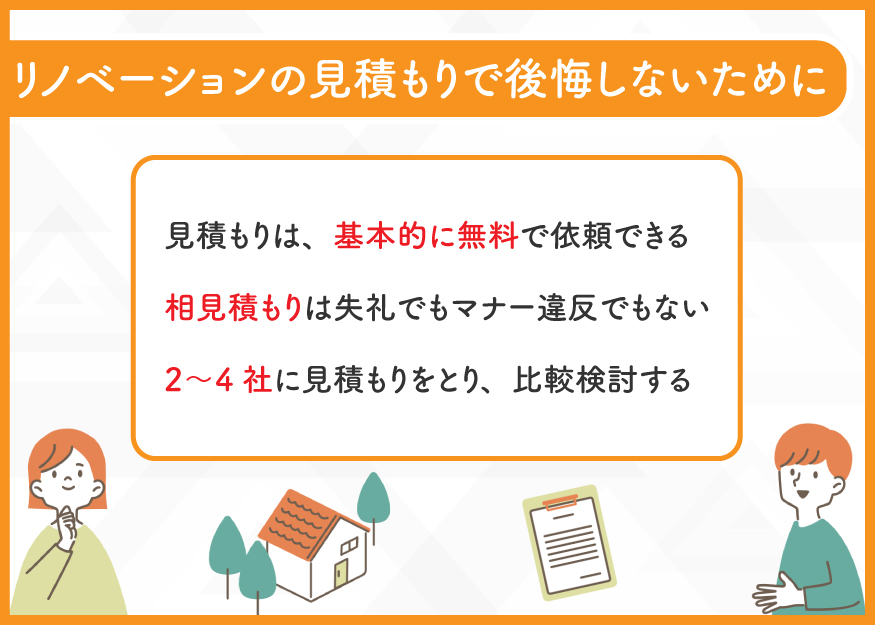 リノベーションの見積もりは、複数社で比較・相見積りをすることが大切です。