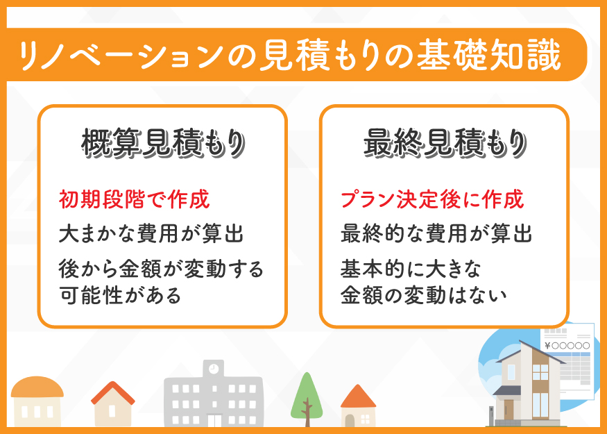 リノベーションの見積もりには、「概算見積もり」と「最終見積もり」の2種類があります。
