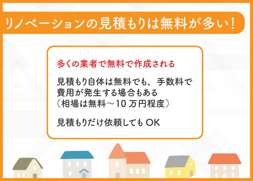 - リノベーションの見積もり費用は無料~10万程度