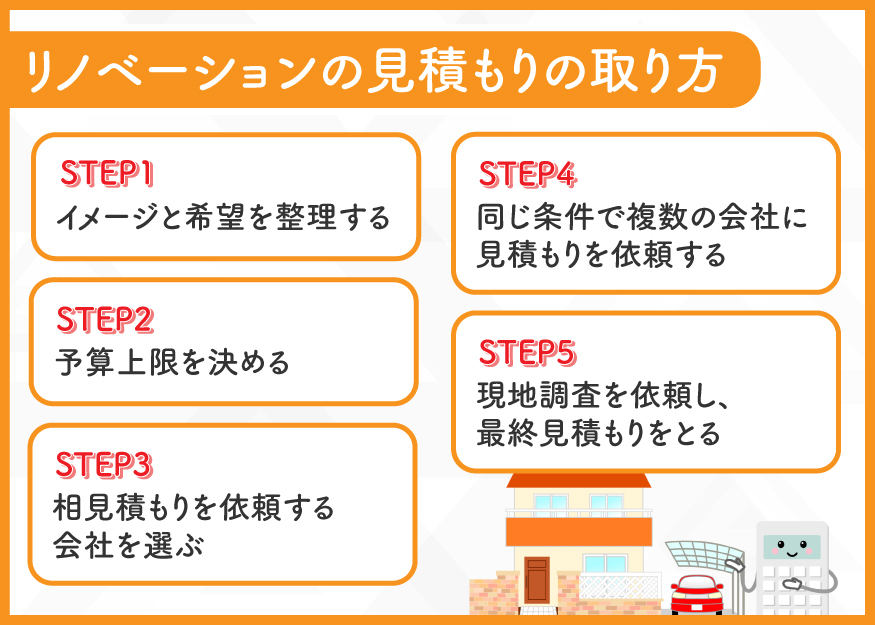 - リノベーションの見積もりは5つのステップで進められる