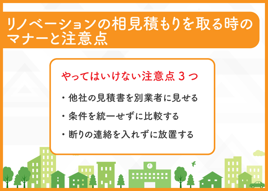 - リノベーションの相見積もりを取る時の注意点